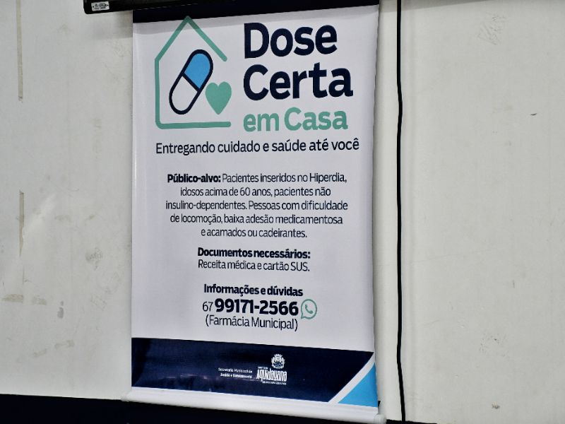 A Prefeitura de Aquidauana iniciou nesta quarta-feira (19) uma nova etapa na assistência à saúde pública do município. Por meio da Secretaria Municipal de Saúde e Saneamento, foi lançado o programa Dose Certa em Casa, que passa a garantir a entrega domiciliar de medicamentos de uso contínuo para pacientes hipertensos e diabéticos não insulino-dependentes.
