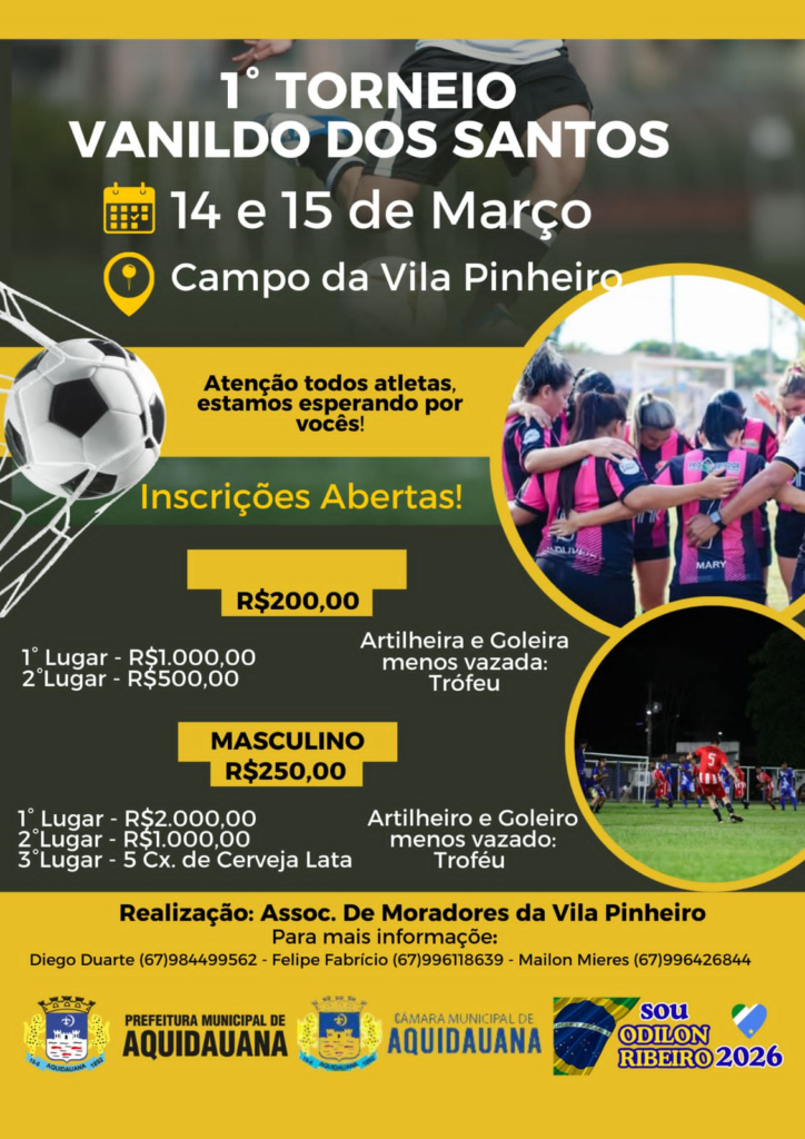 A comunidade da Vila Pinheiro se prepara para um fim de semana de esporte, integração e solidariedade. Nos dias 14 e 15 de março será realizado o 1º Torneio Vanildo dos Santos, no campo do bairro, evento organizado pela Associação de Moradores com o objetivo de reunir atletas, famílias e moradores em torno do futebol.